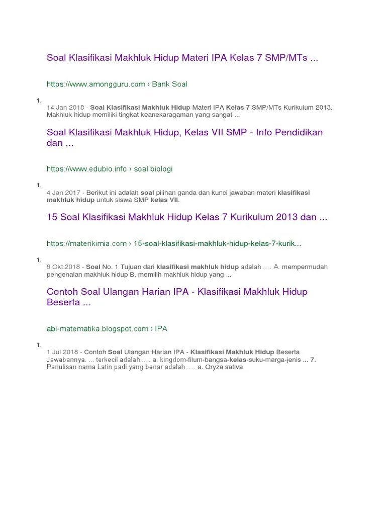 Soal Klasifikasi Makhluk Hidup Materi Ipa Kelas 7 Smp Mts Kurikulum 2013