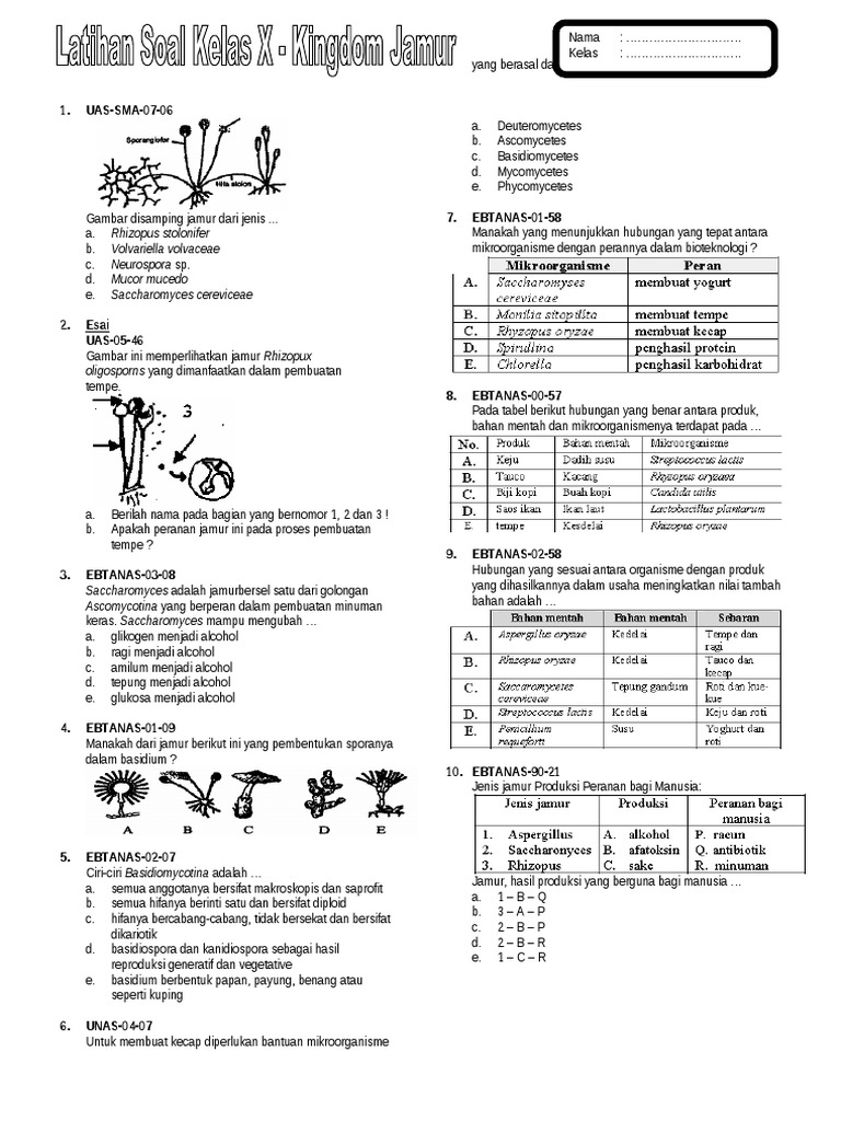 Soal Penilaian Harian Pokok Bahasan Jamur Fungi Biologi Kelas X Sma Ma Biologine Pak Mycunk