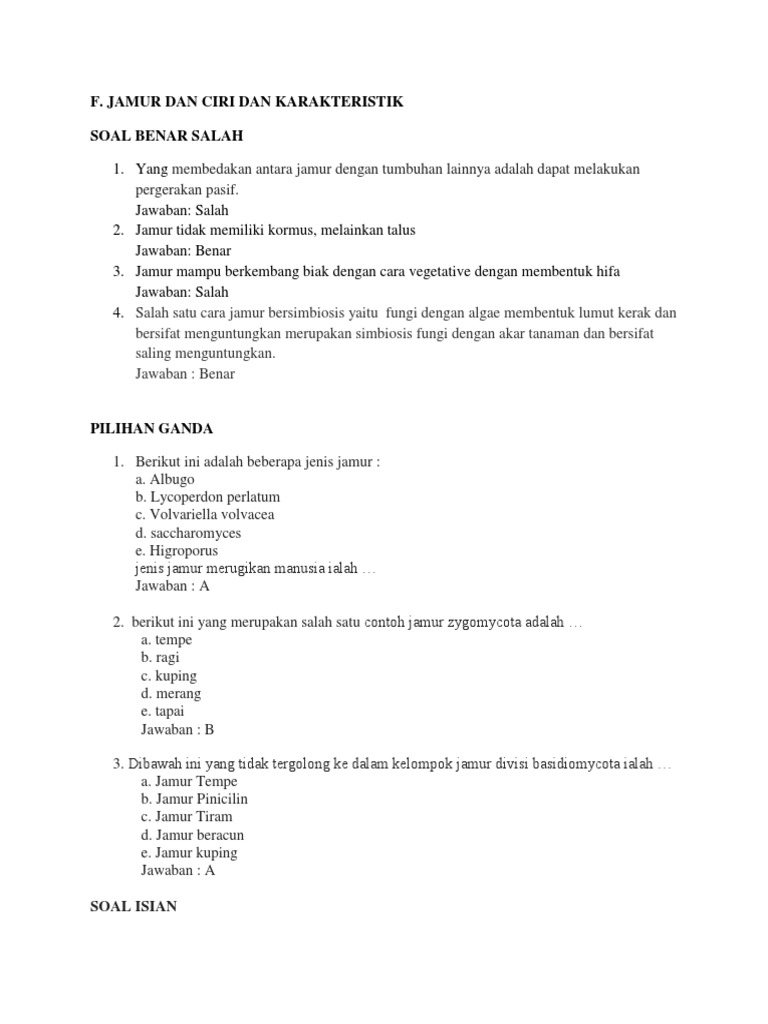 Soal tentang jamur beserta jawabannya Soal Essay 1-10. 100 contoh soal simple present tense dan jawabannya. 09 10 2017 pukul 17 10.